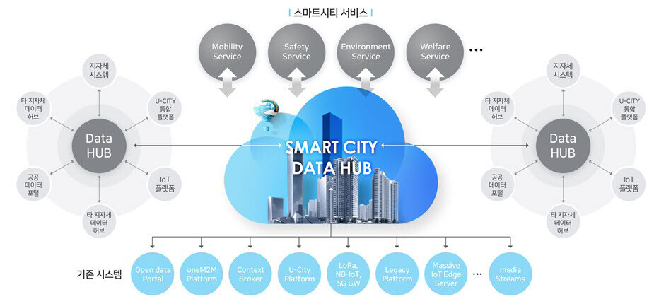 우선, 스마트시티가 제공할 수 있는 다양한 서비스를 이뤄내기 위해서는 기본적으로 사람이 손쉽게 해결할 수 없는 일을 해결할 AI(Artificial Intelligence) 기술이 본격적으로 필요하게 될 것이고, 이러한 AI를 운영하기 위해서는 도시에 관련된 수많은 데이터가 요구될 것이다. 따라서, 요구되는 방대한 도시 데이터(도시 빅데이터)를 관리하고 다루기 위해서는 데이터 허브라고 불리는 플랫폼을 꼭 구축할 필요가 있다. 이는 많은 양의 데이터를 효율적으로 관리하는 데 필요할뿐더러, 데이터를 더욱 빠르게 계산하고 전송하는 데 꼭 필요한 요소가 되기 때문이다. 데이터 허브가 모두 생성되면, 앞서 말한 도시 빅데이터를 수집하기 위해 스마트 IoT(Internet of Things)의 힘이 꼭 필요하게 될 것이다. 사물인터넷이라고도 불리는 IoT는 사물에 부착된 센서를 통해 도시데이터를 수집, 저장하여 플랫폼 연계 및 재난위험, 경보안내 등의 다양한 서비스를 발굴하는 데에 기여할 수 있으며, 측정한 데이터를 연계, 확산하기 위한 스마트 인프라를 구축하는데 핵심적인 역할을 한다.
