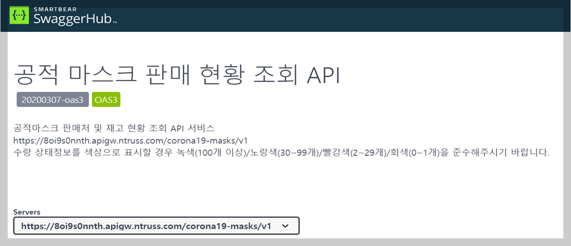 앱을 개발하기 위해 SwaggerHub라는 사이트의 '공적 마스크 판매 현황 조회 API'를 활용하였다.